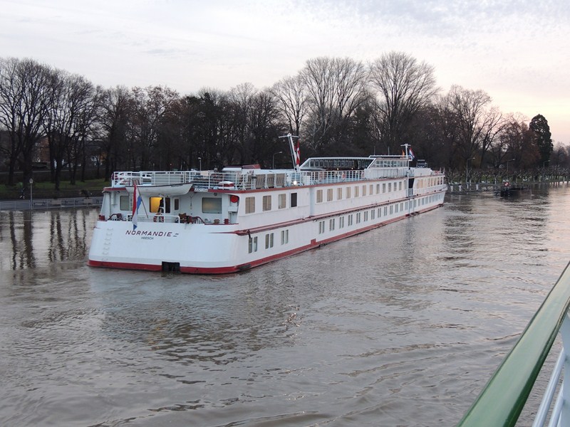 Normandië , 91,20 x 10,50 x 1,50 , 112 ton , Bouwjaar 1989 , Werf De Biesbosch in Dordrecht ( Nederland ) , 2 x 400 pk Baudouin , eigenaar Cruiselines Nijmegen Holding BV in Heesch , ENI 02327268