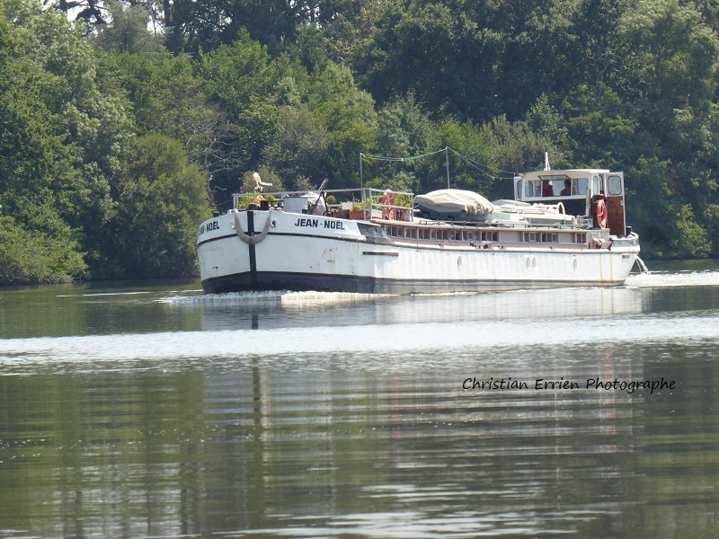 J'étais à bord d'un petit bateau électrique sur lequel j'aurais bien mis un moteur hors bord pour pouvoir suivre le JEAN-NOEL au passage du pont. (C'est la photo où on a l'impression qu'il fonce droit dans la rive..... fort heureusement il s'engage sous l'arche du pont).