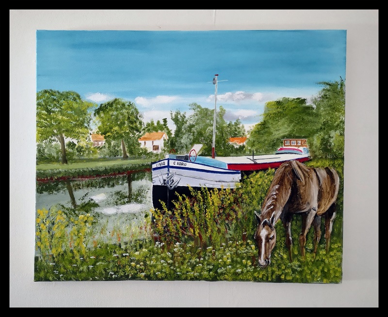oui!!c est vrais les personnages j ai du mal!!je commence les chevaux sa va je gère!!sa fait quinze années que j ai commencer a peindre:j aime bien!et les bateaux sa toujours été ma passion! je marche le matin! et je voie les bateaux amarrer !surtout des grand maintenant car les 38m sont rares!et surtout le long du canal!pas de masque!!
