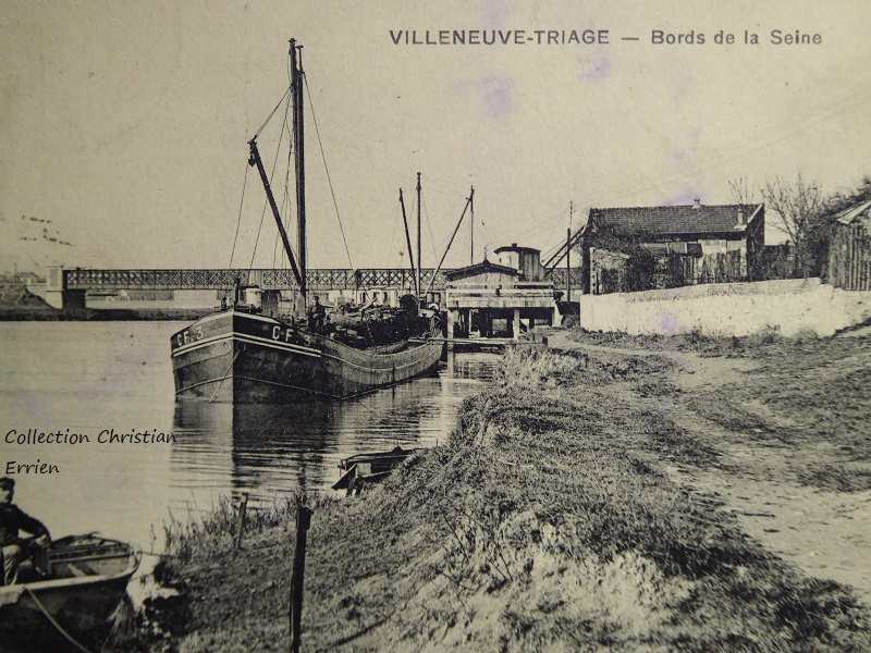 voici une jolie cpa prise à Villeneuve Triage et voyagée en 1924. On voit un bateau ayant le look d'un luxemotor nommé CF 3. S'agit-il d'un Ciment Français?