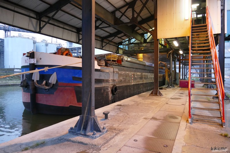 NOBIS, c'est un peu un bateau historique, maintenant : en effet, c'est lui qui a été le dernier à charger à la Solvay à Dombasle. Après des milliers et des milliers d'autres, il n'y en a plus eu après ce 3 avril 2019 :
