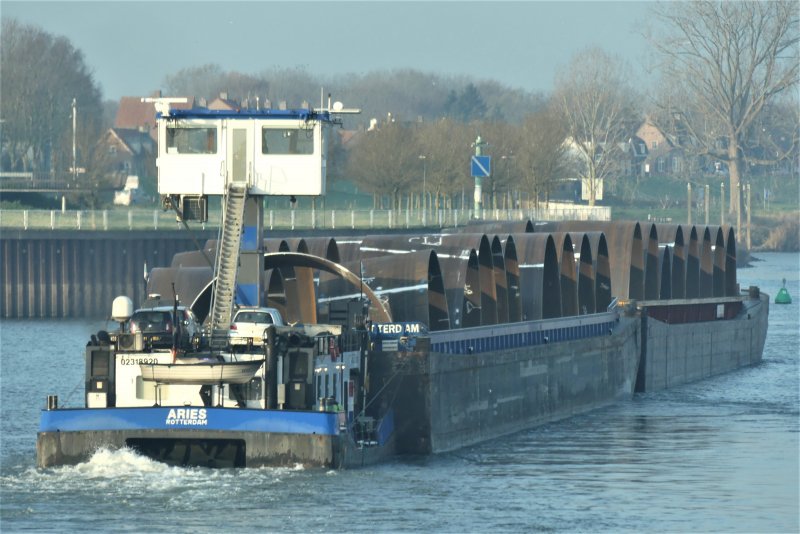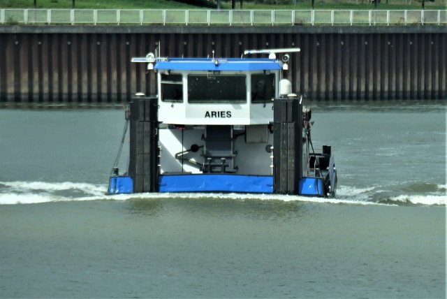 Aries , 18,24 x 9,54 x 2,32 , Bouwjaar 1989 , Werf Van de Werf & Visser in Gorredijk ( Nederland ) , 2 x 1200 pk Cummins , ex Shamu , ex Maas , eigenaar De Jong Rederij BV in Rotterdam , ENI 02318920