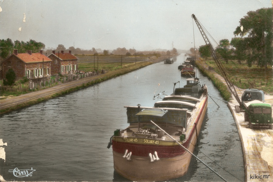Le voici sur une photo éditée en deux cartes postales différentes : une grand format colorisée, et une autre plus petite en noir et blanc ; la grande s'appelle "Meurchin - le canal" alors que pour la petite, c'est "Wingles - le canal de Meurchin".