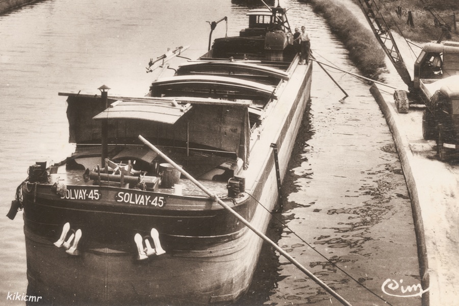 La photo est un peu floue, mais c'est bien le SOLVAY 45 chargé, en navigation :