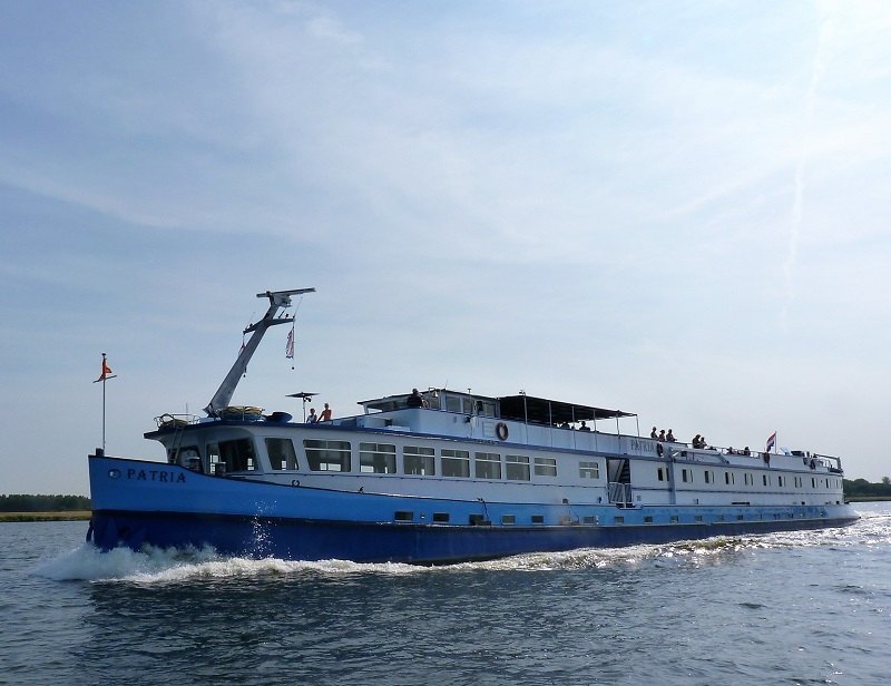 Patria, 67,18 x 7,70 x 1,60 , Bouwjaar 1940 , Werf Gustavsburg Schiffswerft GmbH in Mainz-Gustavsburg ( Duitsland ) , 1 x 430 pk Deutz & 1 x 800 pk Deutz en 200 pk ? boegschroef , ex Hoesch 1 , ex Georg Reitz 1 , ex Ruhr , ex Patria , eigenaar Patria Cruises BV in Zutphen , ENI 02312744