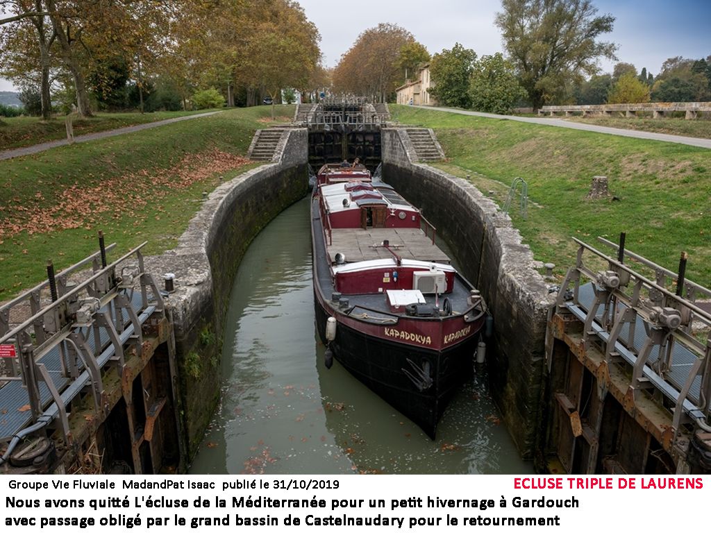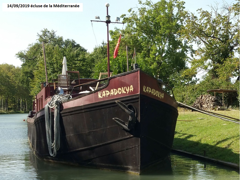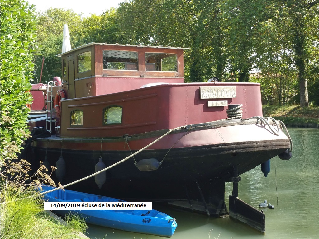 Il est amarré dans le bief de partage au-dessus de l'écluse de la Méditerranée.