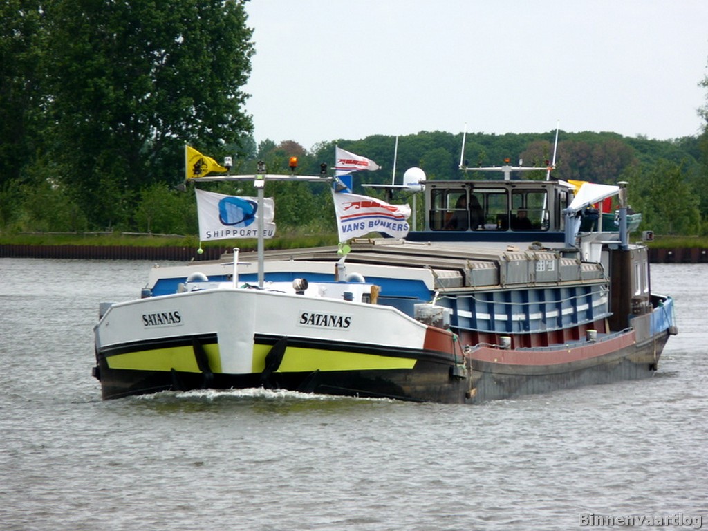 Satanas , 50,94 x 6,62 x 2,90 , 667 ton , Bouwjaar 1963 , Werf Chantier Naval de Rupelmonde (CNR) in Rupelmonde ( België ) , 2 x 217 Cummins , ex Rojane , ex Kristin , eigenaar Adrien Manché in Vise , ENI 06002837