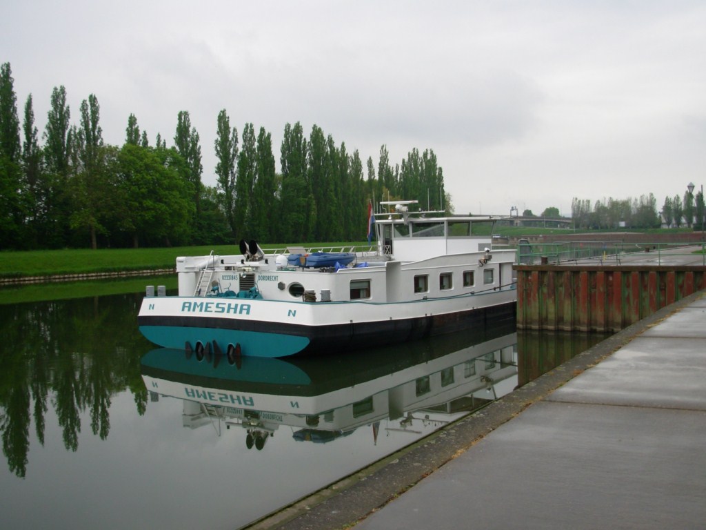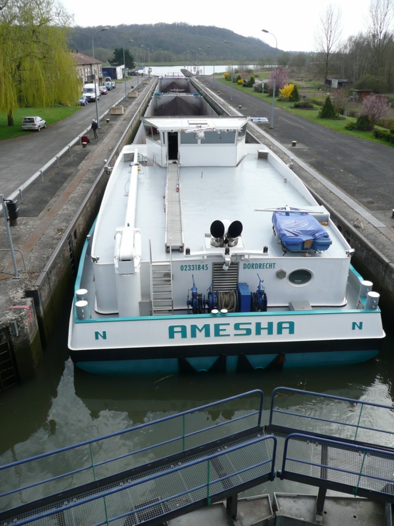 Rhenus Dillingen , 95,50 x 11,45 x 3,20 , 2516 ton , Bouwjaar 2009 , Werf Astrachan Plant in Astrachan ( Rusland ) en De Groot Scheepstechniek BV in Moerdijk ( Nederland ) , 2 x 1600 pk Cummins en 560 pk Cummins Verhaar Omega-Jet boegschroef, ex Amesha , eigenaar Rhenus Logistic GmbH & Co KG in Duisburg , ENI 02331845