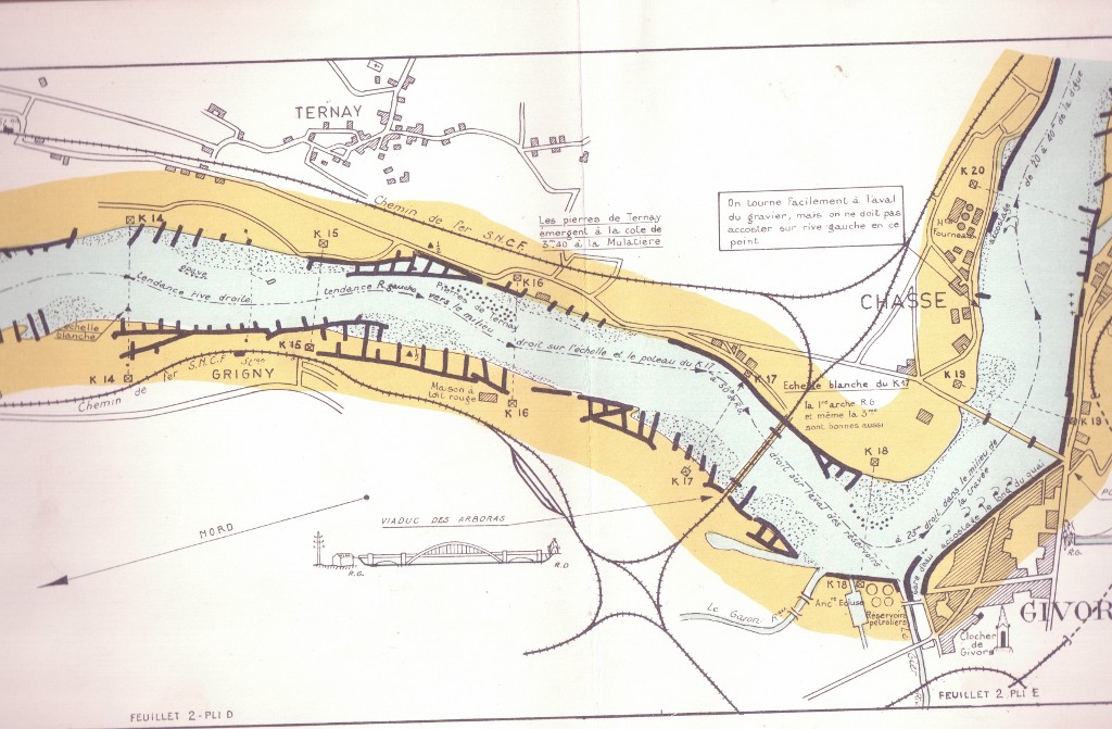 Avant la canalisation, la connaissance de la mesure (relative) de ces échelles permettait de connaitre le tirant d'eau dans les moins d'eau, donc l'enfoncement envisageable, donc le tonnage possible. A 350 tonnes, le citerna 12 calait environ 1,30 m et 2,20 m à 900 tonnes. C'est donc une information qui était communiquée par la compagnie, ou qu'il fallait solliciter auprès des agents du "graphique", répartis tout au long du fleuve avant chaque chargement. Ce graphique, relevé journalier, indiquait également la position probable des différentes unités navigantes. Au Pouzin, l'agent était M. Joussin.