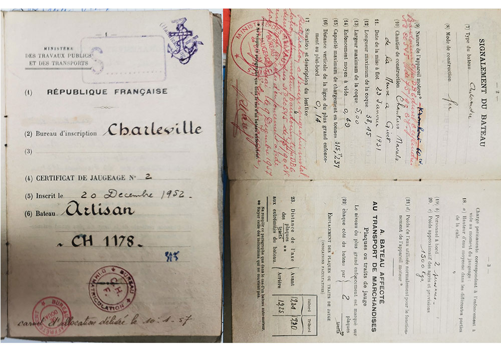 1935 : La péniche ARTISAN est désormais propriété de la famille CARPENTIER, mariniers de père en fils, domiciliés à Conflans-Sainte-Honorine.