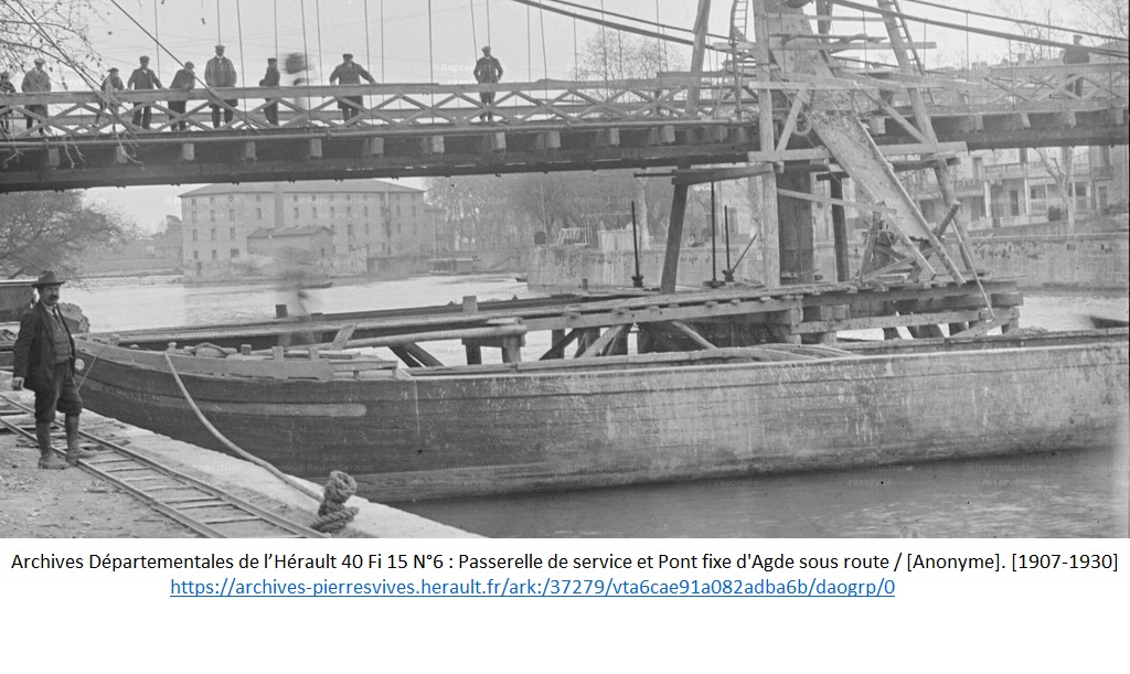 Son titre ‘’Passerelle de service. Pont fixe d’Agde sous route (1907-1930).