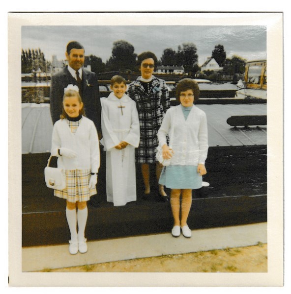 -A gauche Patricia Ghislain. Le communiant Patrice Ghislain,( son frère) et Anita Ghislain, l'ainée des 4 enfants Ghislain.