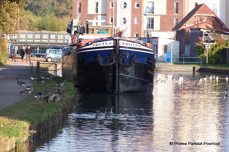 Le Protea et sa barge "Partout-Pourtout" sur la Deûle se matin ...