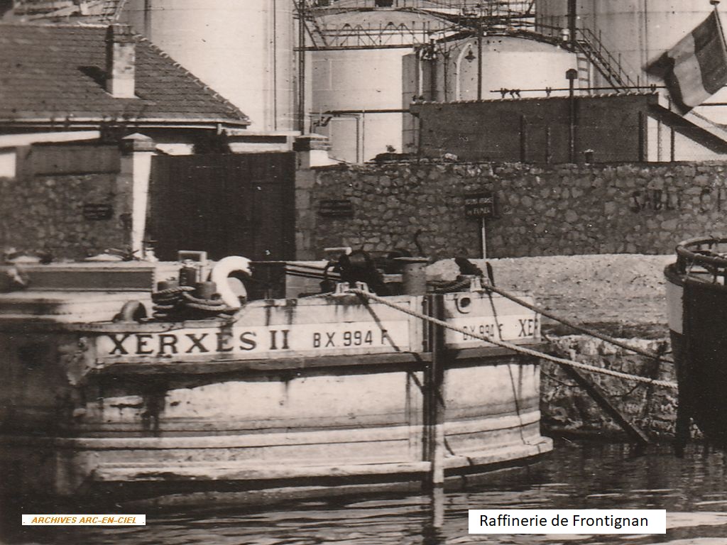 Sur cet extrait de carte postale on a le XERXES II amarré devant la raffinerie de Frontignan.