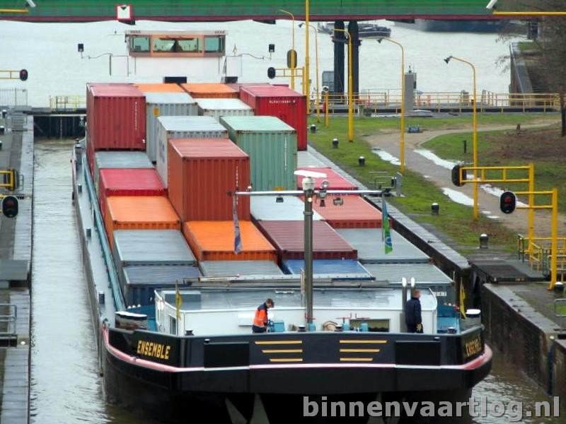 Ensemble , 109,98 x 11,40 x 2,86 , 2210 ton , Bouwjaar 1997 , Werf Santierul Naval Orsova SA in Orsova ( Roemenië ) en De Waal in Werkendam ( Nederland ) , 1800 pk ABC en 2 x 430 pk DAF - van Wijk boegschroef , ex 2 x Ensemble , eigenaar Vof. Vegas (J. Woortman) in Vreeswijk , ENI 02322909