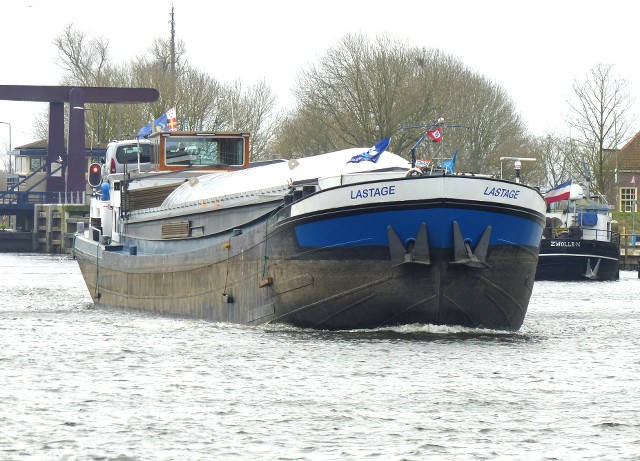 Lastage , 55,00 x 6,60 x 2,61 , 604 ton , Bouwjaar 1962 , Werf Gebr. Geleijns in Roodevaart ( Nederland ) , 450 pk Scania en 130 pk DAF boegschroef , ex Adriaan , ex Arnold , ex Concordia , eigenaar Lastage Scheepvaart in Opeinde , ENI 02311315