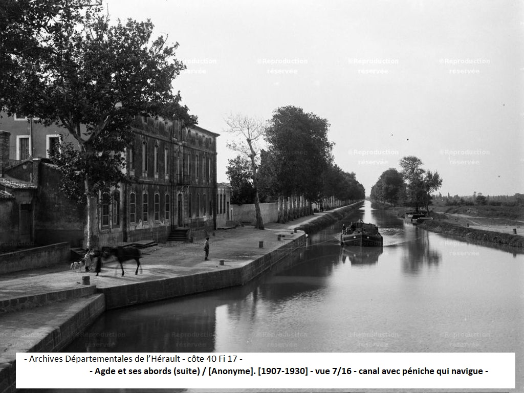 Sur cette photo on aperçoit une barque tirée par son mulet qui va accoster au port d’Agde.