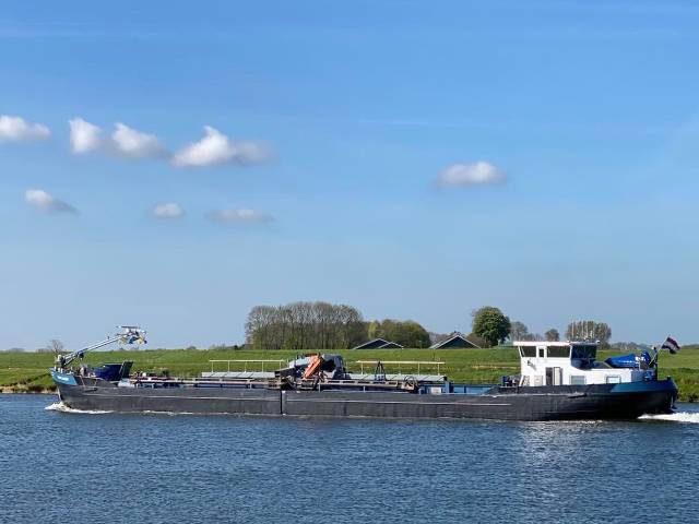 Ventjager , 59,18 x 6,82 x 2,33 , 497 ton , Bouwjaar 1965 , Werf van Santen in Sliedrecht ( Nederland ) , 490 pk Caterpillar , ex Ventjager , eigenaar J.W.de.Roover in Hardinxveld-Giessendam , ENI 02103954