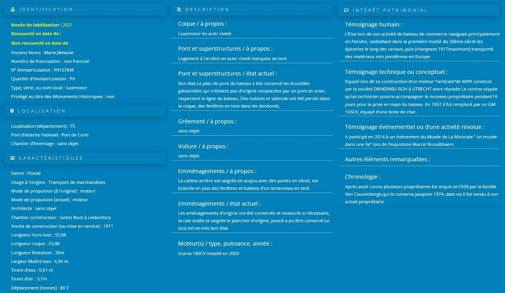 ELZA - P15784F - a été labellisé PATRIMOINE MARITIME ET FLUVIAL en 2021.