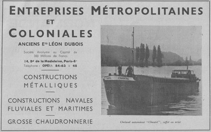 Une publicité pour Motem - Société des moteurs marins parue dans la "Revue de la navigation intérieure et rhénane" du 10 février 1951 : on reconnaît le CHANTAL stylisé !