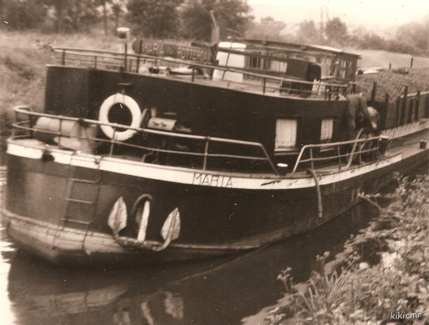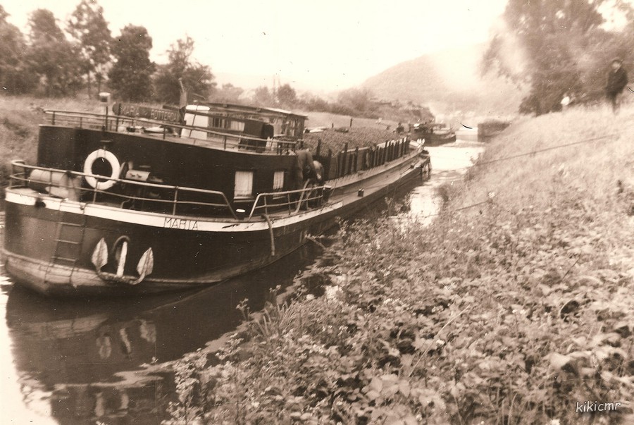 Pour en revenir à la première photo du MARIA amarré à la berge et qui gîte, on peut rajouter qu'il est chargé de coke, en comble ; certains pensent que c'est pour Dombasle (54), mais Jean-Luc Drouin, ici, rappelle qu'à l'époque, il y avait aussi du coke qui montait pour les fours à chaux d'Haudainville (55), et sûrement d'autres destinations.