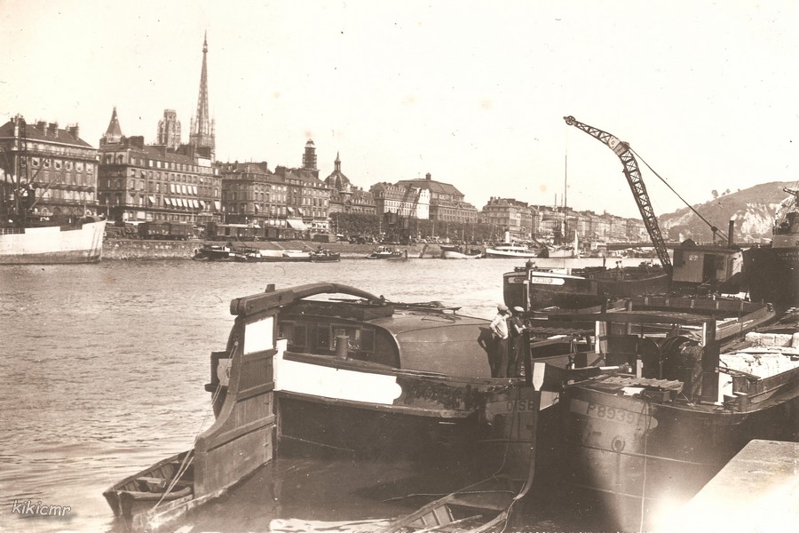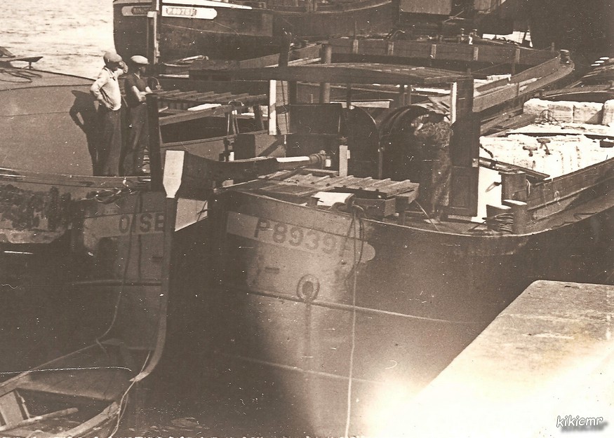 Et devant, au large, on voit aussi un plus gros bateau, MONIQUE P8975F. On a peut-être affaire à un 38m et un chaland à la compagnie Jules Roy ?