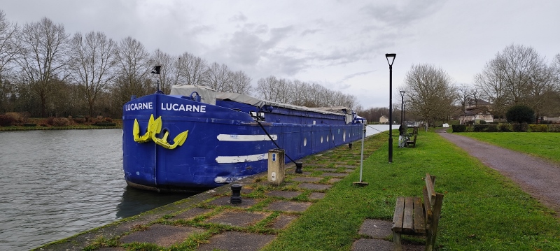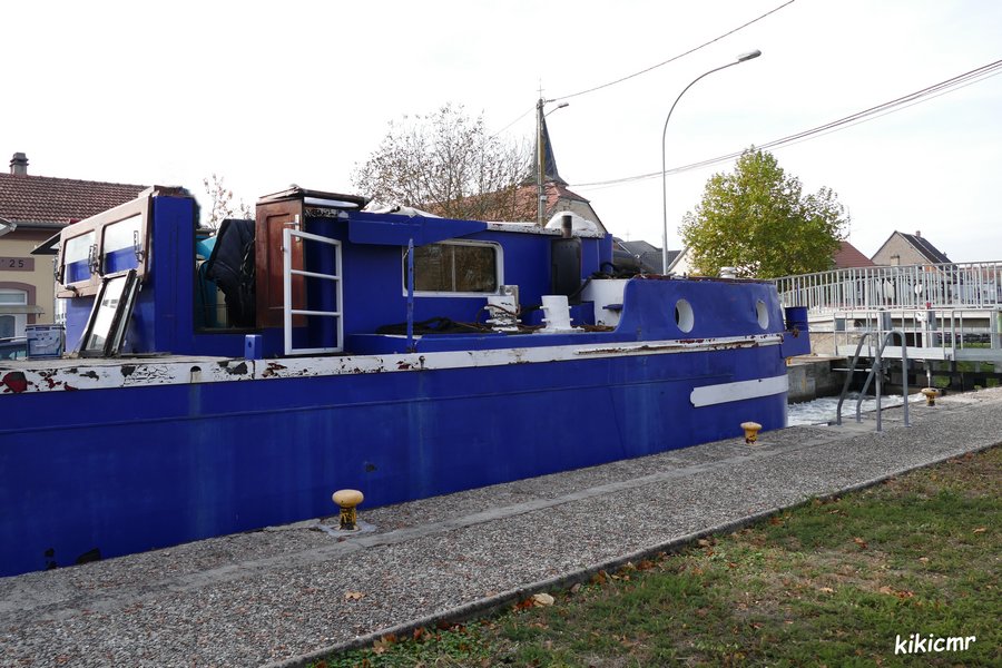 - en novembre 2018, au-dessus de l'écluse n°26 de Steinbach, à Sarreguemines, sur le canal des Houillères de la Sarre ; il venait de quitter le bief de la douane pour aller au chantier à Wittring :