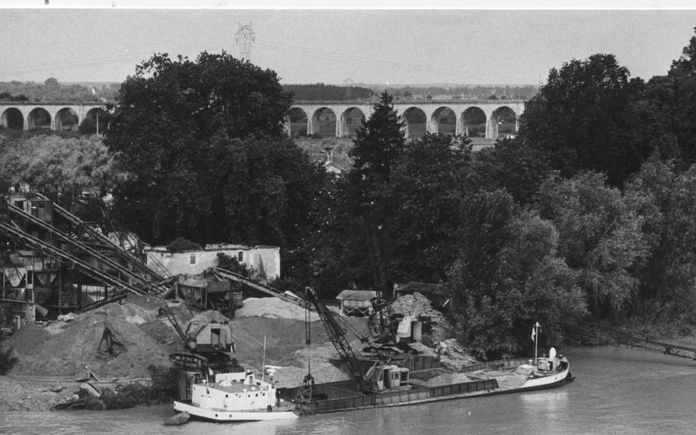 "Le CLAUDE-DENIS piochait du gravier dans l'Estuaire pour ravitailler Saint-Vincent de Paul (proche Saint-André de Cubzac, sur la Dordogne).