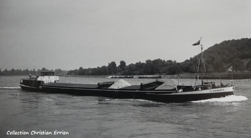 Tirage photo original d'après un négatif ancien. Le MAINGAU 5 navigue à mon avis sur le Rhin. Je ne l'ai pas trouvé sur Binnenvaart