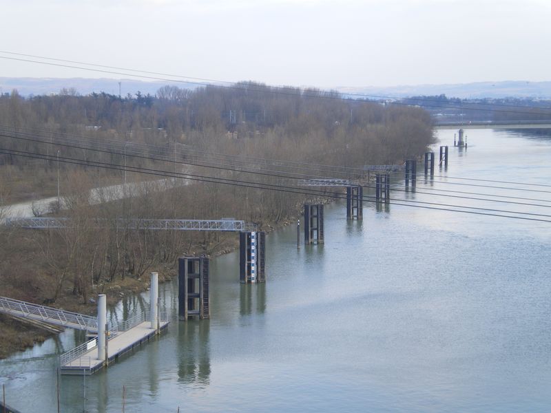 L'on voit d'abord un ponton pour la plaisance (15 bon m)