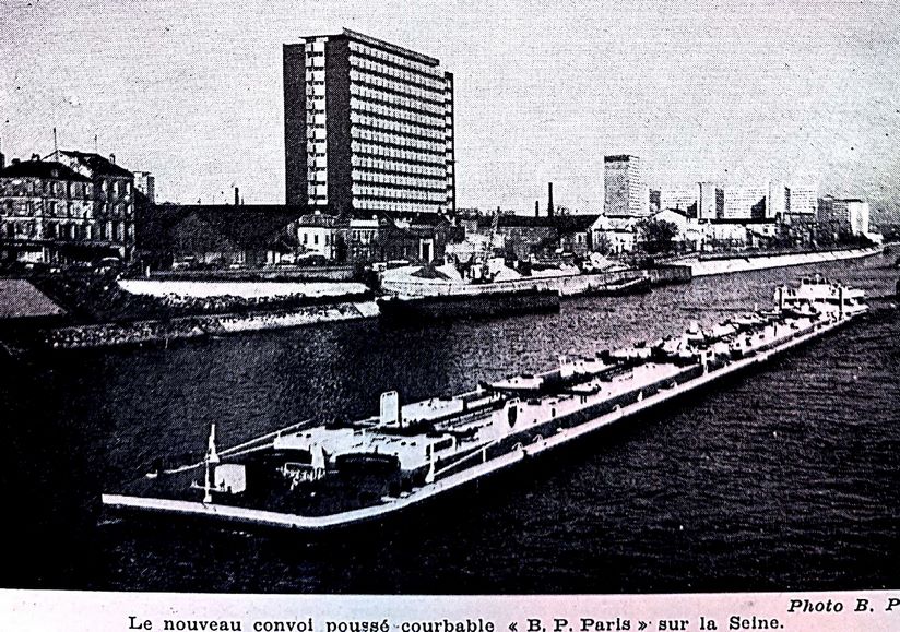 "Entré en service fin 1964, le convoi poussé BP PARIS a permis à la S.F. BP d'amener dans ses dépôts de la Région Parisienne plus de 200 000 tonnes/an de produits pétroliers. Sur une année, la rotation raffineries de Basse-Seine - dépôts BP Région Parisienne, la distance parcourue a été d'environ 30 000 kilomètres avec une vitesse moyenne de 16 km/h pour une navigation journalière de 12 heures avec un équipage de huit personnes.