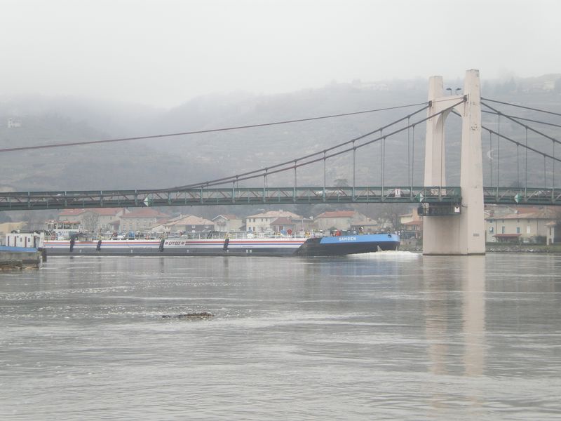 Samoen. Armement CFT GAZ. Ils viennent de l'autre cote. Leurs dimensions sont identiques : 120 X 11,40. ( 2100 t) Ils ont deux moteurs : Caterpillar. Ils transportent du CVM (legerement plus dangereux que de l'eau chaude !! ) . CVM : chlorure de vinyle monomere. Regardez bien ,sur l'arriere des bateaux, juste au dessus des ancres,ils sont equipes pour etre brele avec un pousseur en cas de panne.Personnellement,j'ai vu le cas qu'une fois en + de 15,avec le Passaat. CFT Gaz a pense a tous .