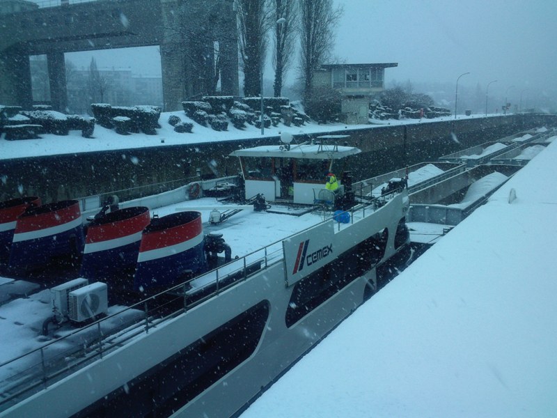 Le NARVAL appartenant a Lafarge, ce pousseur effectue les maneouvres dans les darses de Gennevilliers.