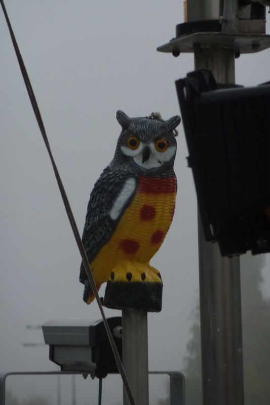 Je pense qu'elle fait peur aux pigeons ?? enfin un truc comme cela...