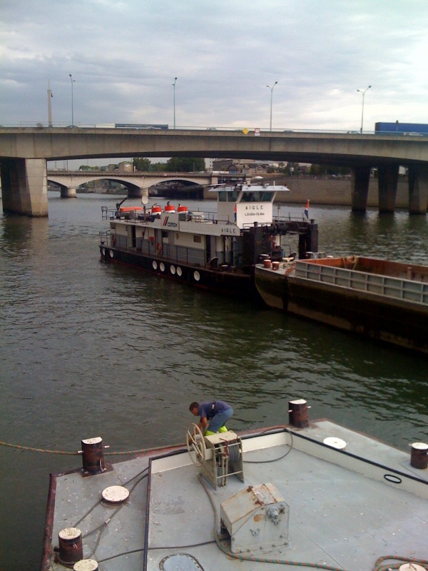 Vu dans "Voies Navigables de France", collection Regards sur la France, n°35, mars 1967 : le pousseur n'est pas le sujet principal, il sert juste de décor pour montrer l'antenne qui se trouve sur le poste de commande de l'écluse d'Andrésy... Mais peut-être certains se reconnaîtront-ils sur la photo, ou reconnaîtront les personnes photographiées...