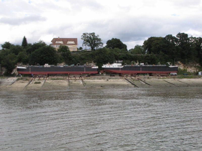 la barge jumièges ayant été construite au trait(dans un hangar,un peut plus bas que le chantier),