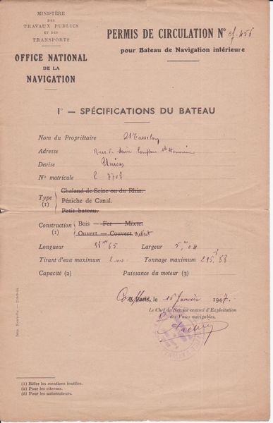 photo de la toue de mon pere en 52-53 ,detruite en 54. en debut de l'annee 1948 il a ose faire un voyage