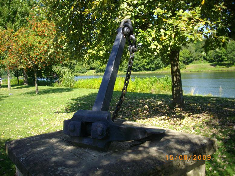 un ancre et une helice bien en vue au bord de la moselle