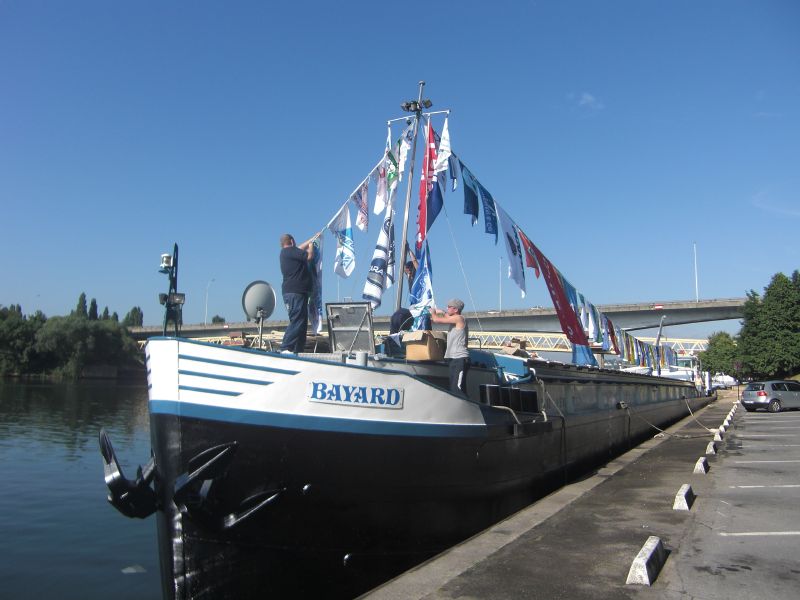 Dans le premier cas, le BAYARD, un Canal du NORD de 1966, les proprietaires sont affaires a poser les derniers fanions a l'occasion du 50eme PARDON...
