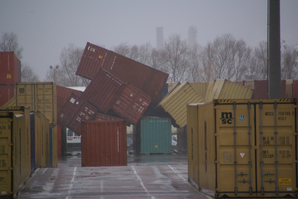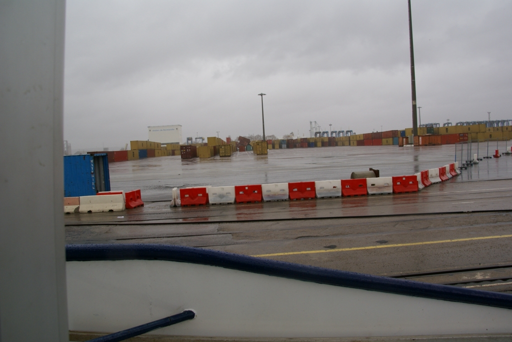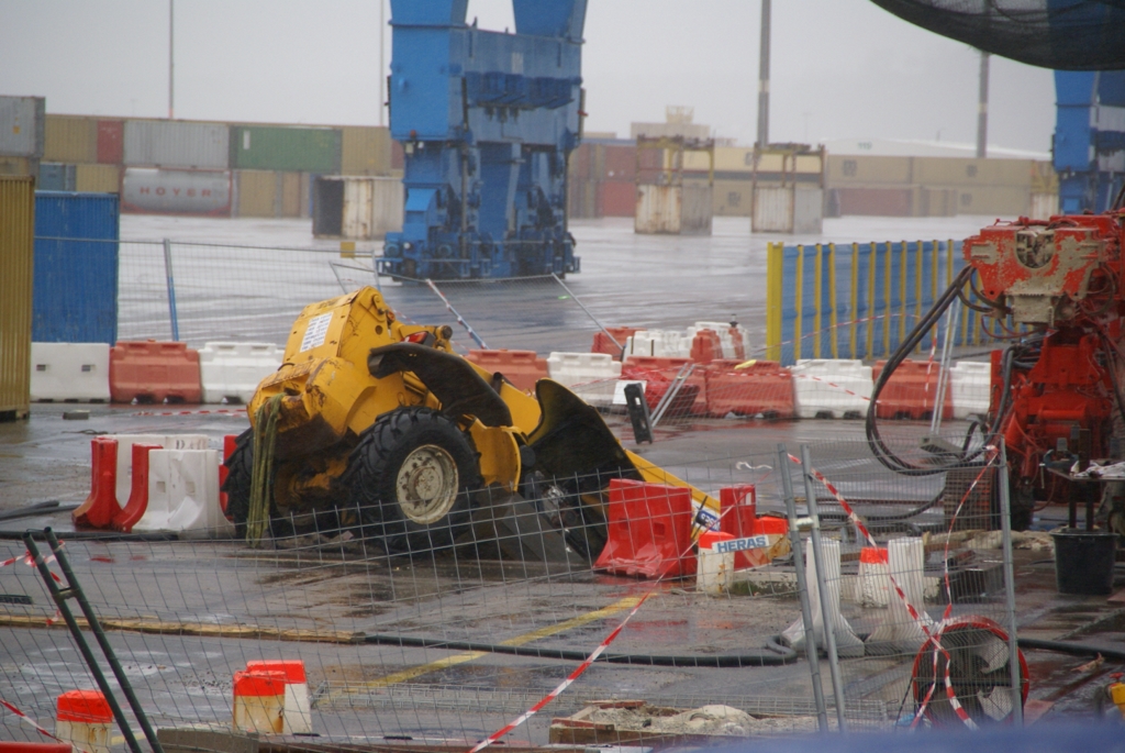 Les conteneurs en vrac, c'était ce matin je les ai entendu tomber ! par contre l'engin qui semble être passé au travers du quai daterai de plusieurs jours...