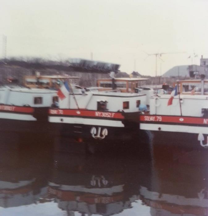 Alors oui, c'est vrai, on en avait déjà des photos aux couleurs Solvay, mais malheureusement, c'est en noir et blanc ou sépia ! Il nous fallait donc des photos en couleur pour compléter le sujet ! Et ENFIN Denis (le fameux dernier marinier du 70) a scanné ses photos ! Voici donc le SOLVAY 70 en rouge et gris :