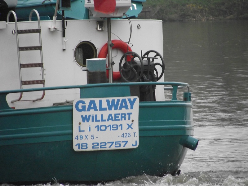 Galway , 49,00 x 5,05 x 2,51 , 424 ton , Bouwjaar 1960 , Werf Niestern Sander in Delfzijl ( Nederland ) , 380 pk Volvo Penta , ex Cornelis B , ex Gondel , ex Flora B , eigenaar A.L. Willaert in Douai , ENI 01822757