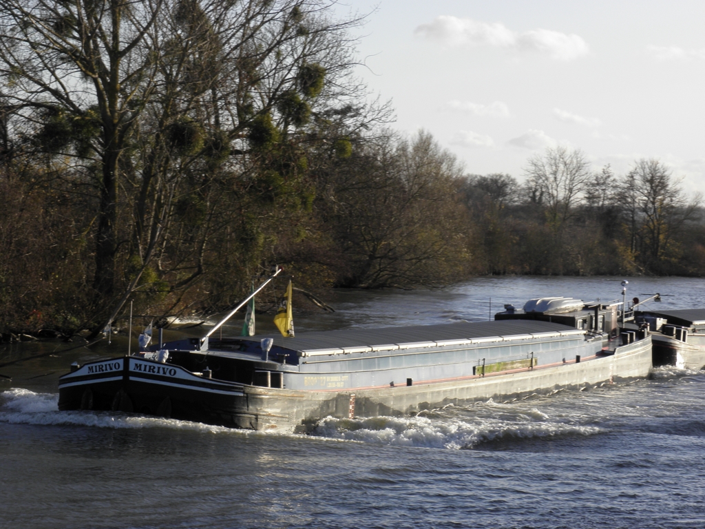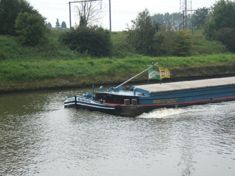 Eddy, mes photos sont prises au canal de Charleroi Bruxelles à Pont -à- Celles ( avant l'écluse de Viesvile)Le convoi est montant . Mais je pense qu'il s'agit de MIRIVO (ex Pixuma, ex Brenda) au lieu de Merivo. ? Agrandir la photo de son étrave