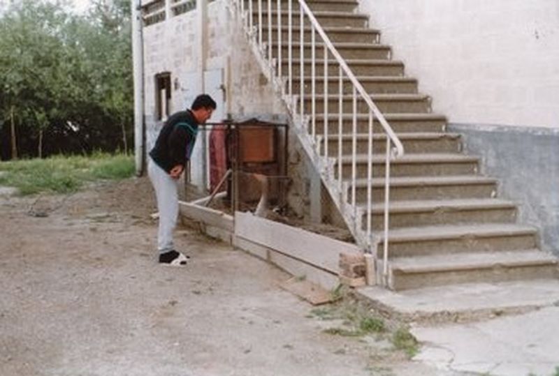 Le gardien nous a acceuille tres gentiment. La discution est sympa, il nous dit "vous ne craignez rien ici, j'ai des chiens, des oies et un gun chargé à la ceinture, je veille toute la nuit". Merci et bonne nuit. Nous nous installons et découvrons que pendant la convers avec le gardien, les oies avait rogner délicatement mon bas de survetement.