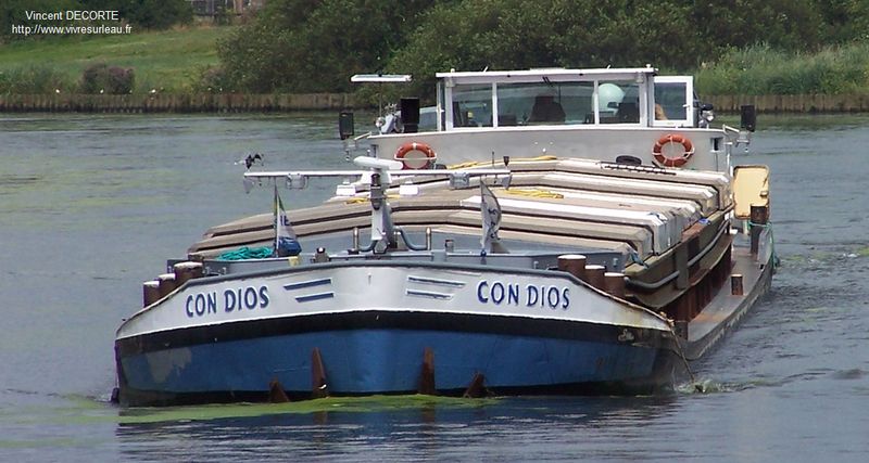 Comme il fait mauvais, je regarde mes vieilles photos argentiques et ...je retrouve le Con Dios que j'ai photographié en juillet 2000, montant, à Humbeek canal maritime Escaut Bruxelles ( canal de Willebroek) Cela n'ajoute rien mais c'est pour le, mon, plaisir.