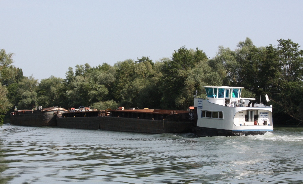 Mais un convoi (pousseur et quelques barges) passe à côté de nous, et Pascal me dit : "Tiens mon ancien bateau" ...
